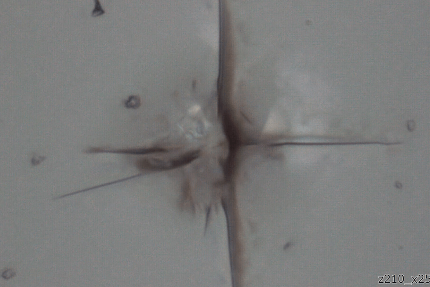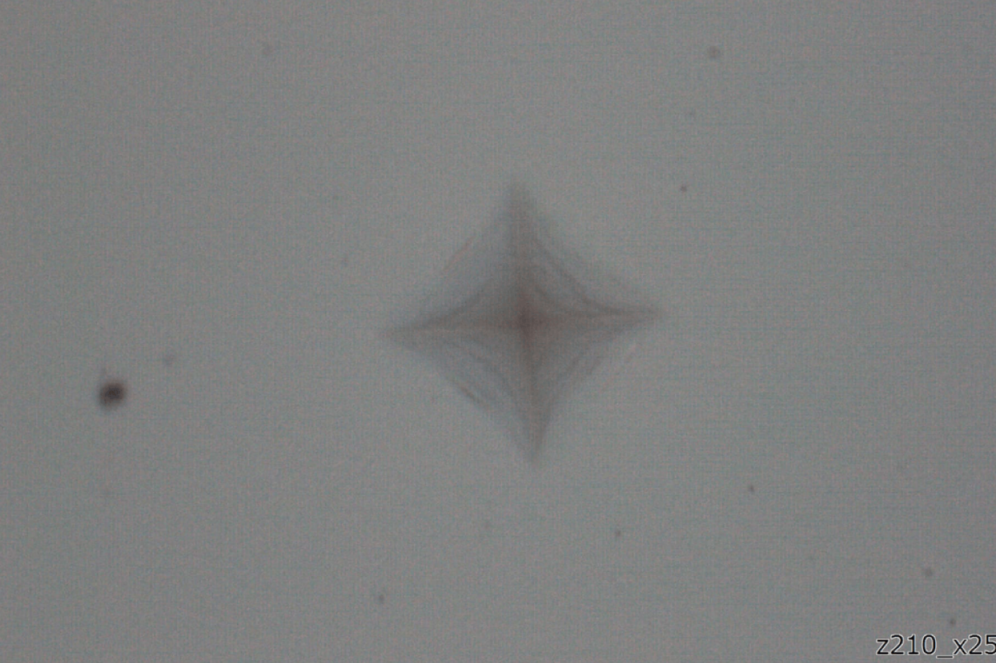 *Bei der Vickers-Härteprüfung wird ein Diamantinstrument auf ein Material gedrückt, und der so entstandene Eindruck wird zur Berechnung der Härte des Materials verwendet, die als Vickers-Pyramidenzahl (HV) ausgedrückt wird.Klarglas-Keramik