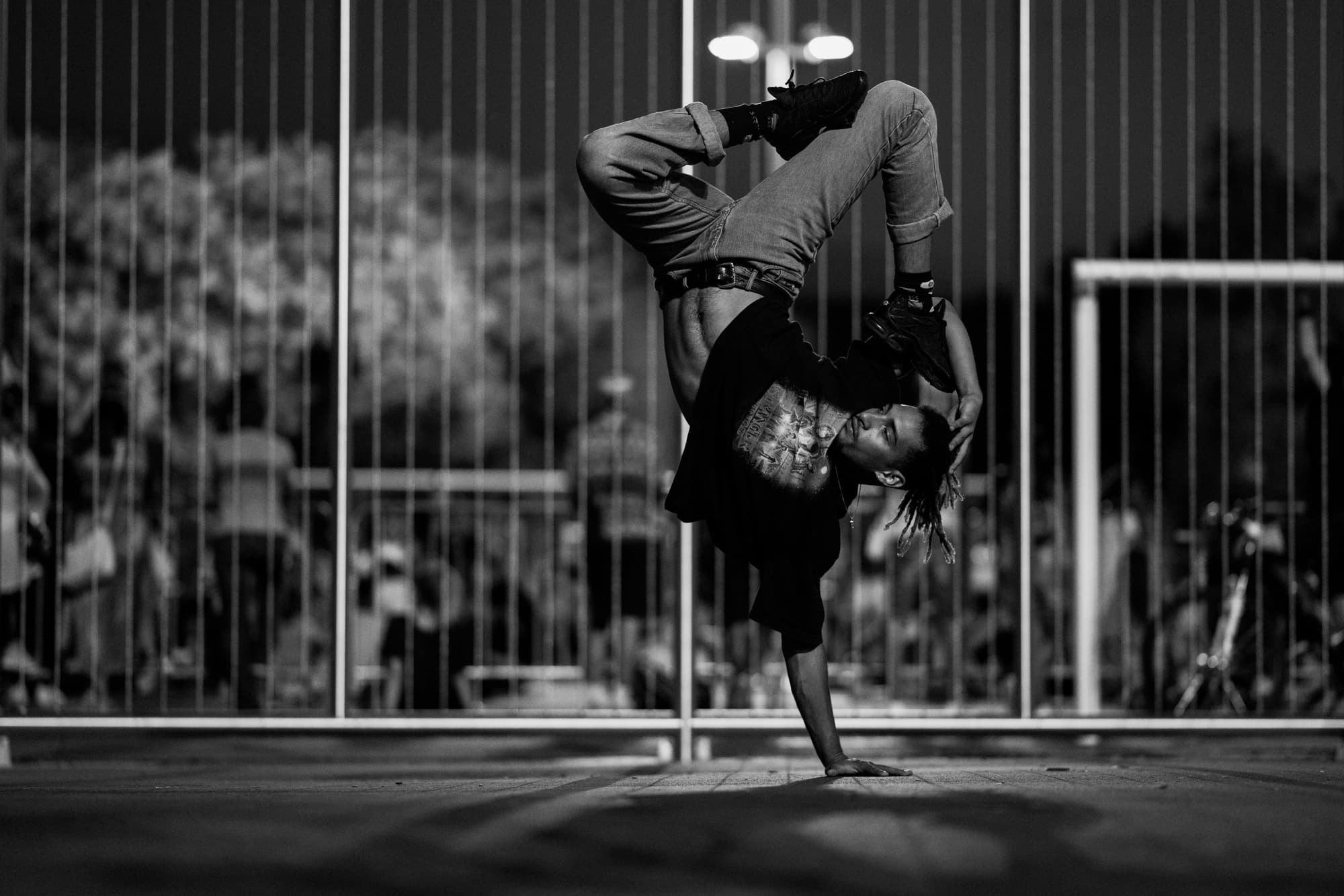Younès. 19 years old. He’s the new guy on the playground where dancers are used to rehearse here but coming from a family of dancers, you know you’ll hear about him! Always there to repeat power moves and tricks. Great guy to go out with
