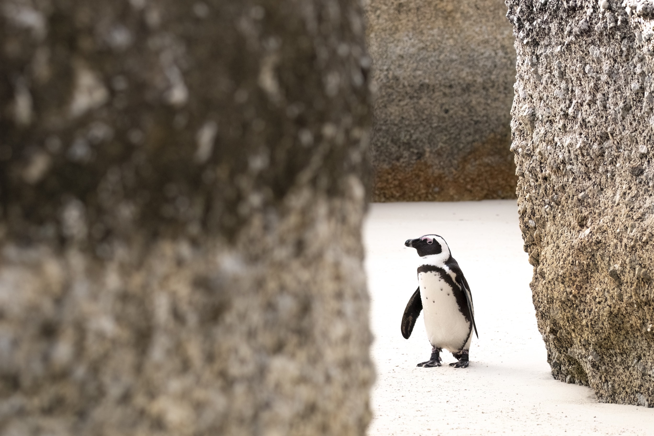 Mes premiers sujets avec cet objectif ont été la colonie de manchots africains de Boulders Beach. Directement sortis du sac, ces oiseaux en voie de disparition se sont révélés être un excellent test pour les wide possibilités de l'objectif en angle large, ainsi que pour ses capacités de zoom. Qu'il s'agisse de photographier à 400 mm pour les gros plans wide ou de capturer les rochers emblématiques qui ont donné leur nom à l'endroit, l'objectif a vraiment montré sa polyvalence. Le zoom à double action* a permis des ajustements souples et rapides, facilitant le cadrage de la photo parfaite, même dans des situations de prise de vue rapides, comme ces oiseaux apparaissant de manière inattendue entre les rochers.